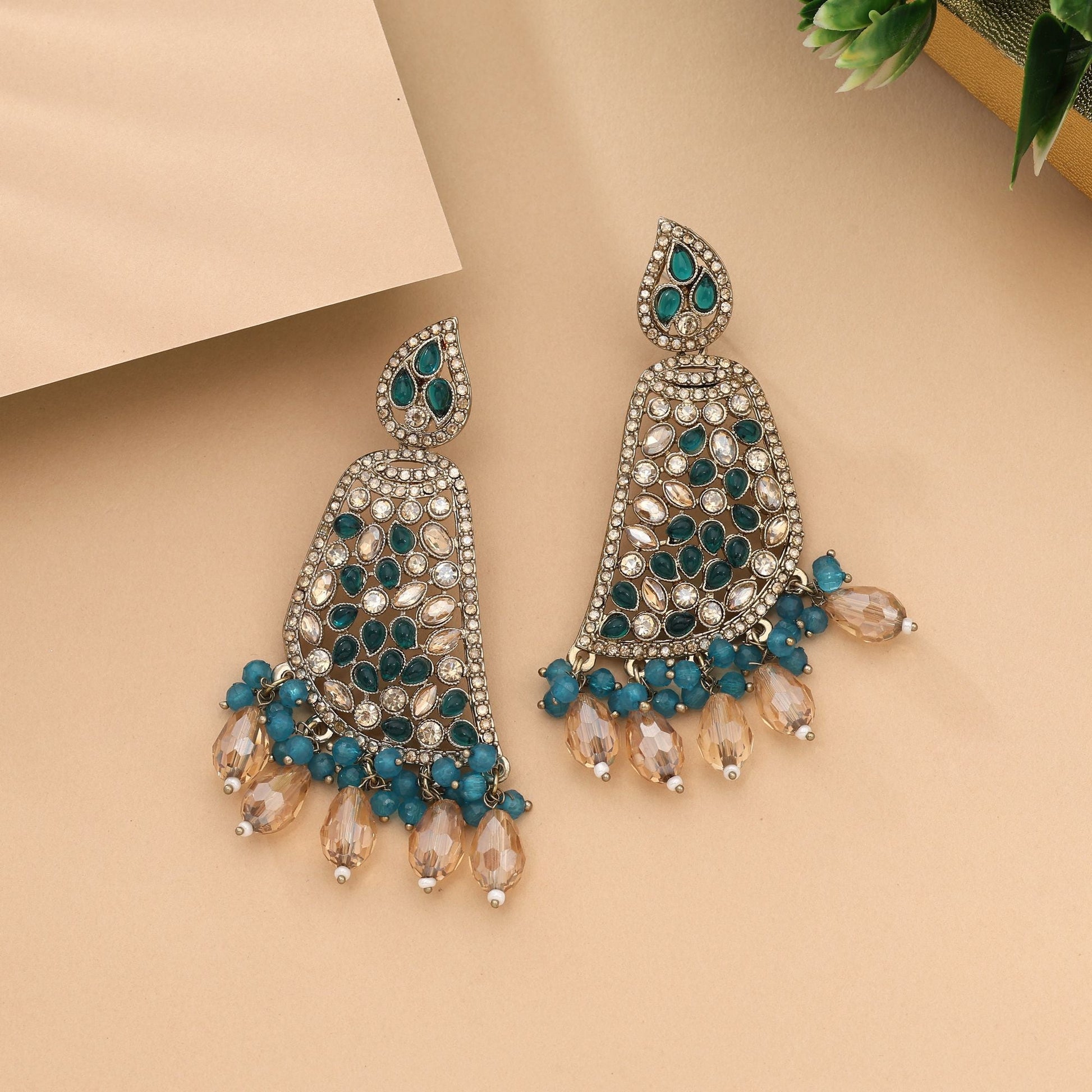 Stylish Rama Green Color Kundan Earrings Perfect For Festive Traditional Look