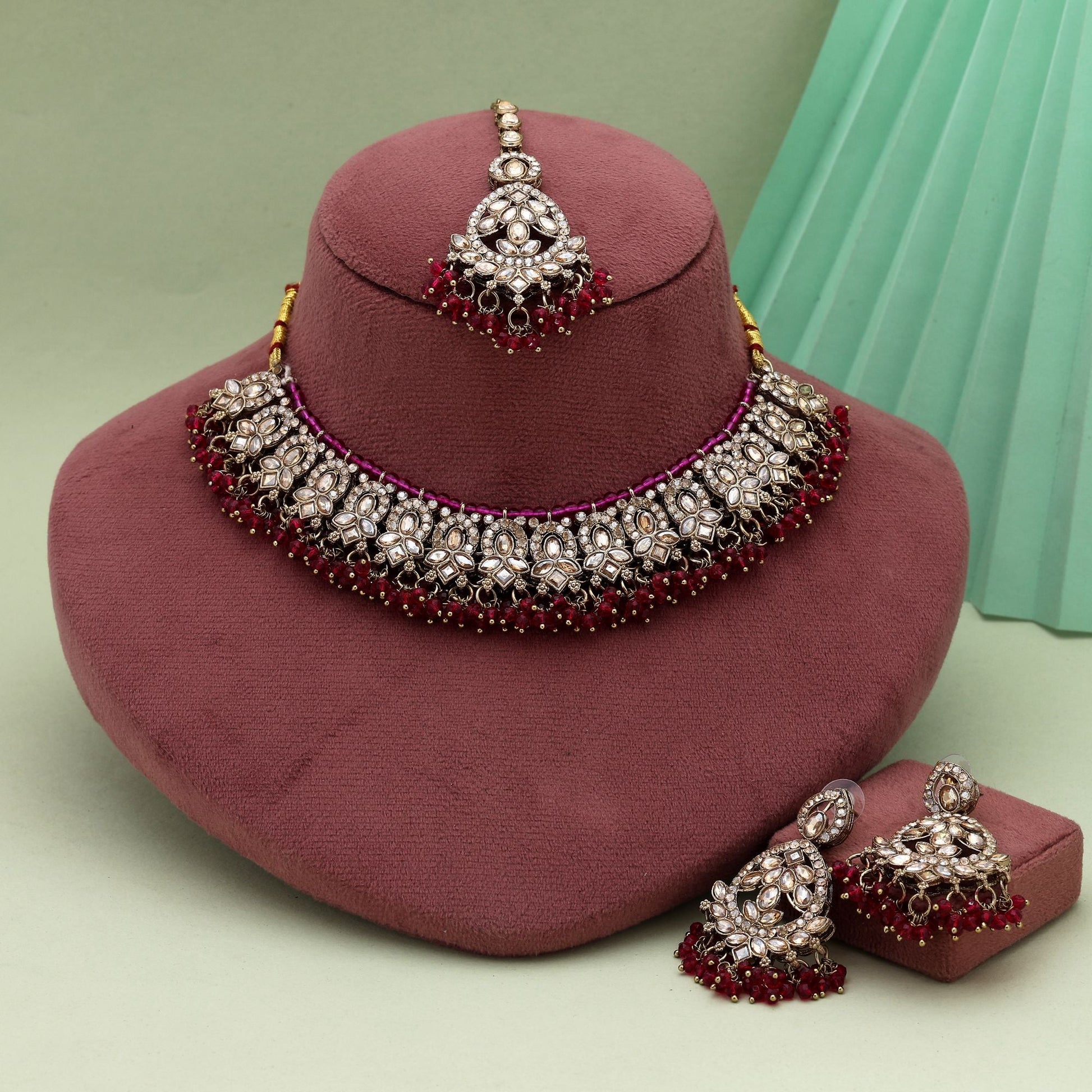 1 Piece Of Necklace::1 Pair Of Earrings::1 Piece Of Maang Tikka