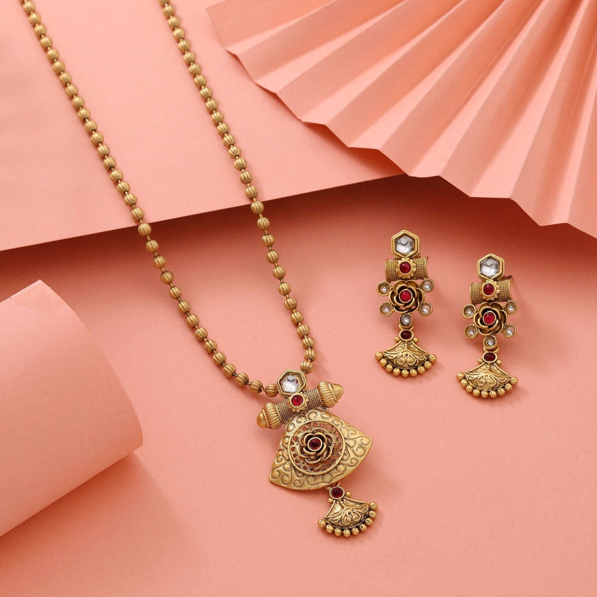 Gorgeous Rani Color Premium Crafted Matte Gold Necklace Set For Festive Wear