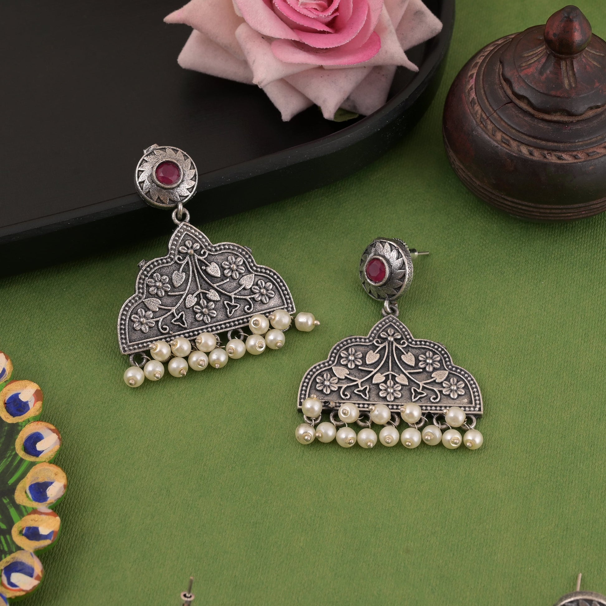 Beautiful Rani Color Oxidised Earrings For Festive And Traditional Occasions