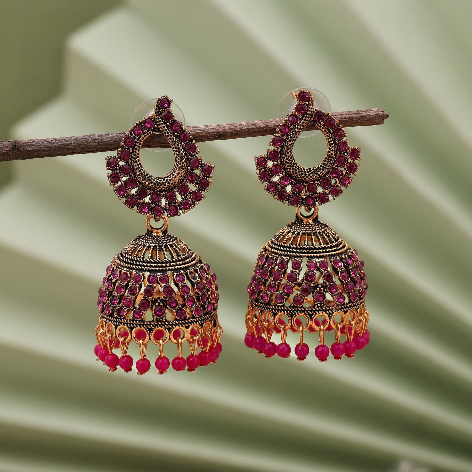 Stylish Rani Color Oxidised Earrings Perfect For Weddings, Functions, And Ethnic Women’S Fashion Jewelry
