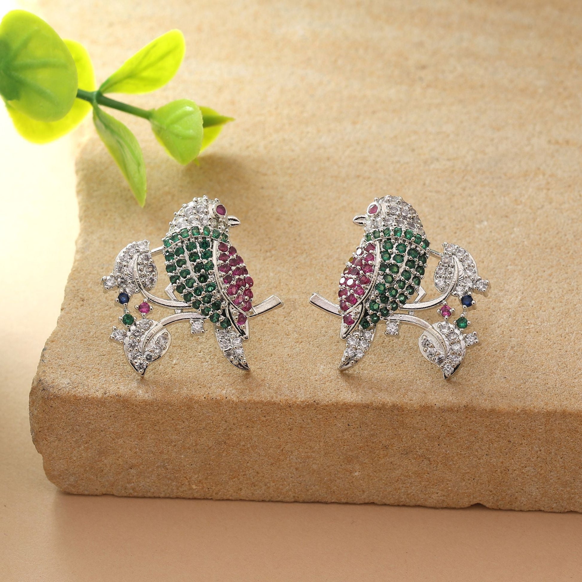 Rani & Green Color American Diamond Earrings Fashion Earrings With Dual Tone Glam