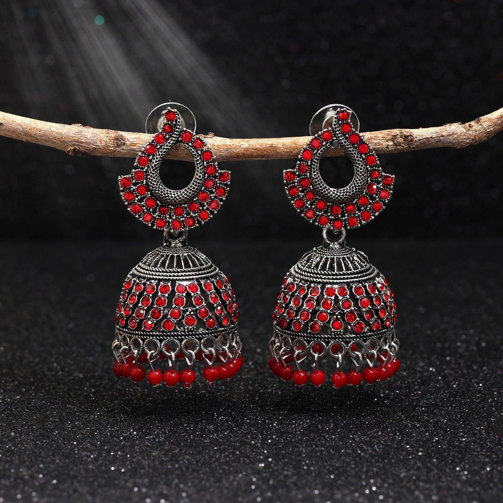 Elegant Red Color Oxidised Earrings Designed With Handmade Artistic Work For Brides And Party Wear