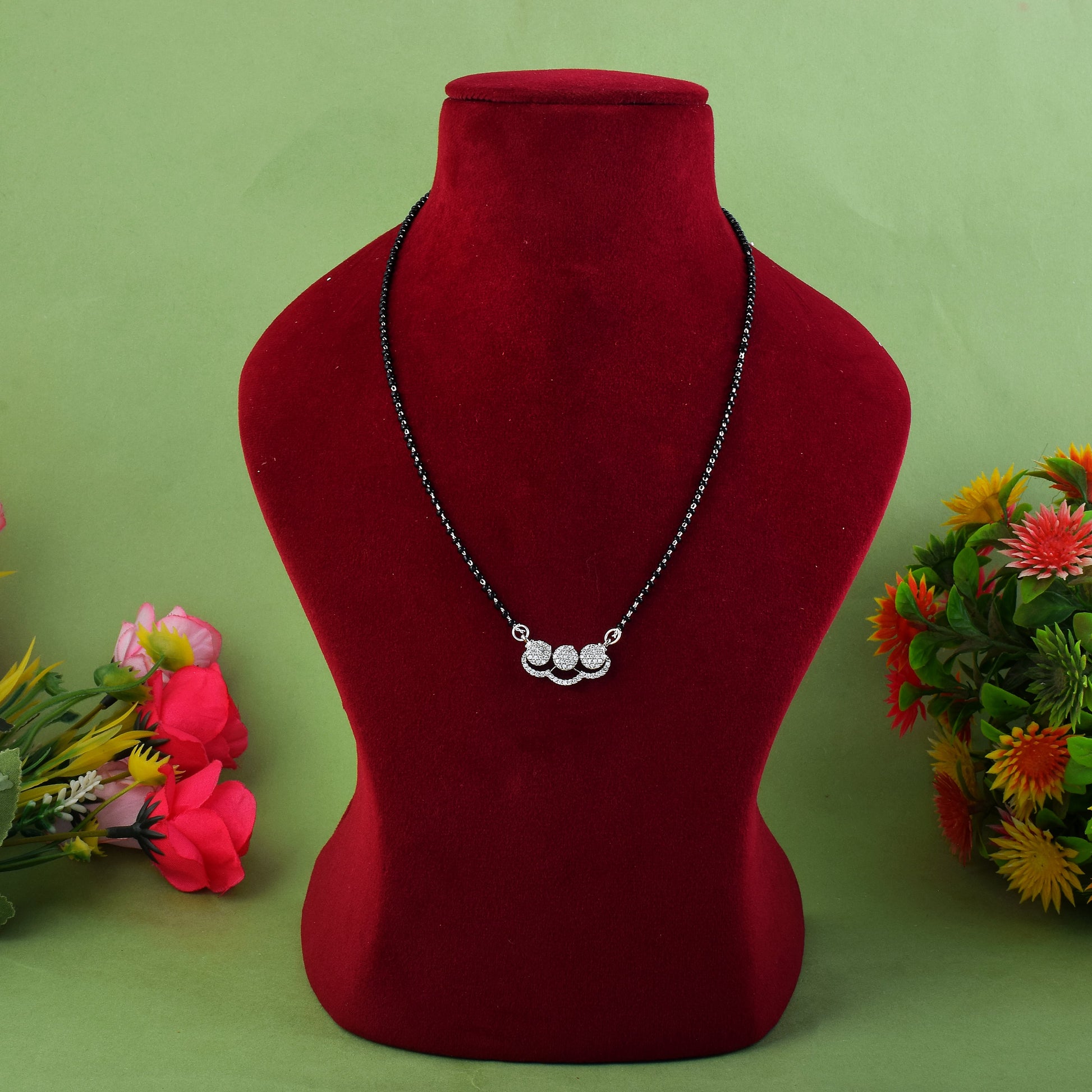 Silver Color American Diamond Mangalsutra Featuring Circular Center Charm