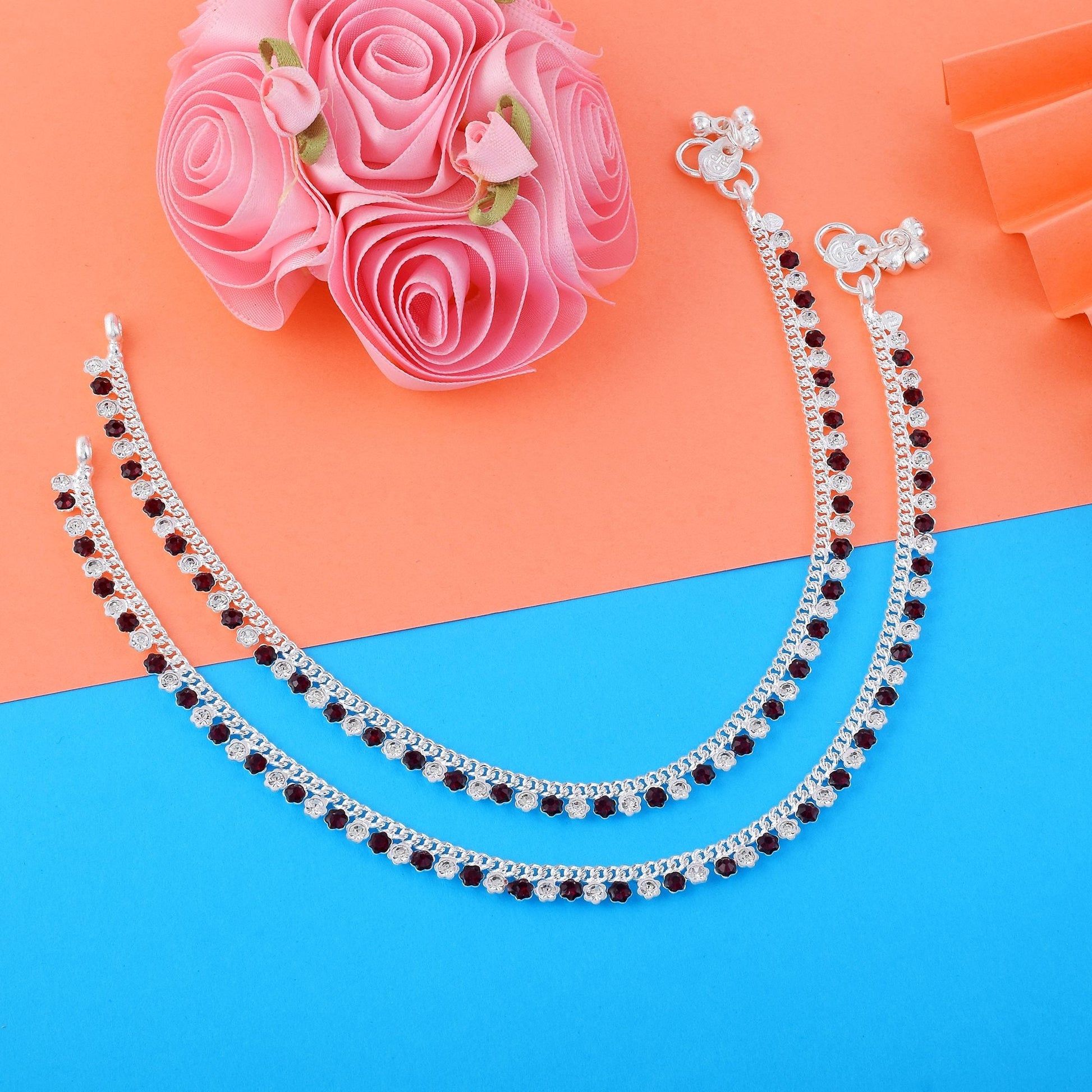 Stylish Maroon Color Anklets Crafted for Women’s Bridal, Party, and Festival Jewelry Needs