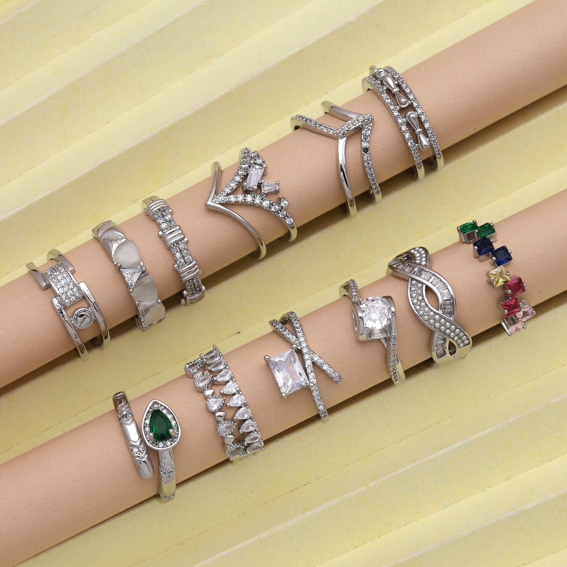 Elegant Silver Color Combo Of 12 Pieces American Diamond Rings For Daily Use