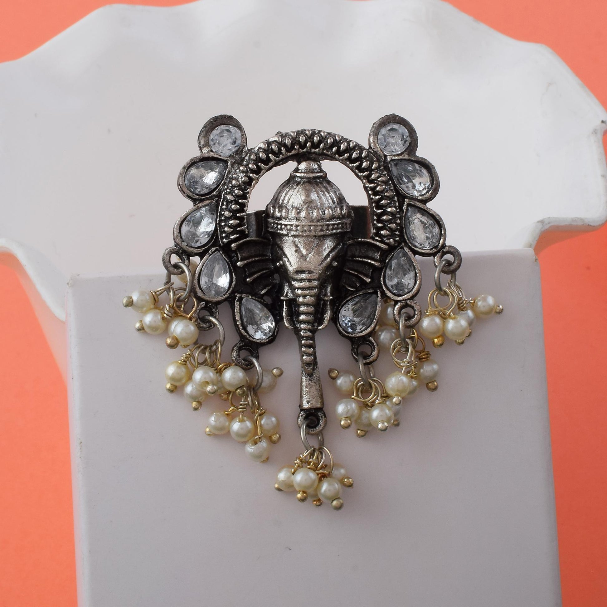 Designer Silver Color Oxidised Rings With Floral And Tribal Motifs