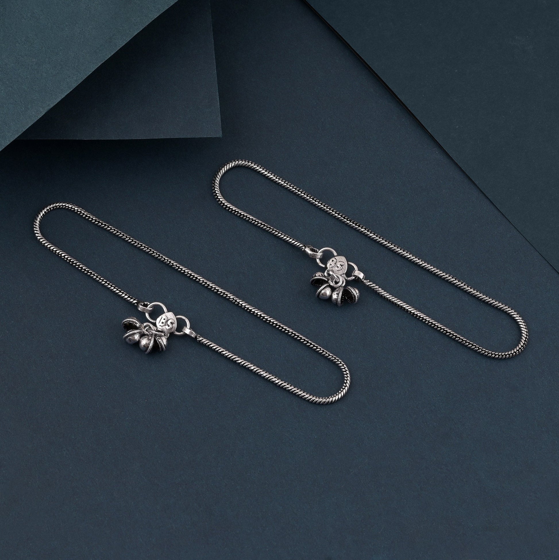 Handmade Silver Color Oxidised Anklet With Fine Detailing And Comfortable Fit