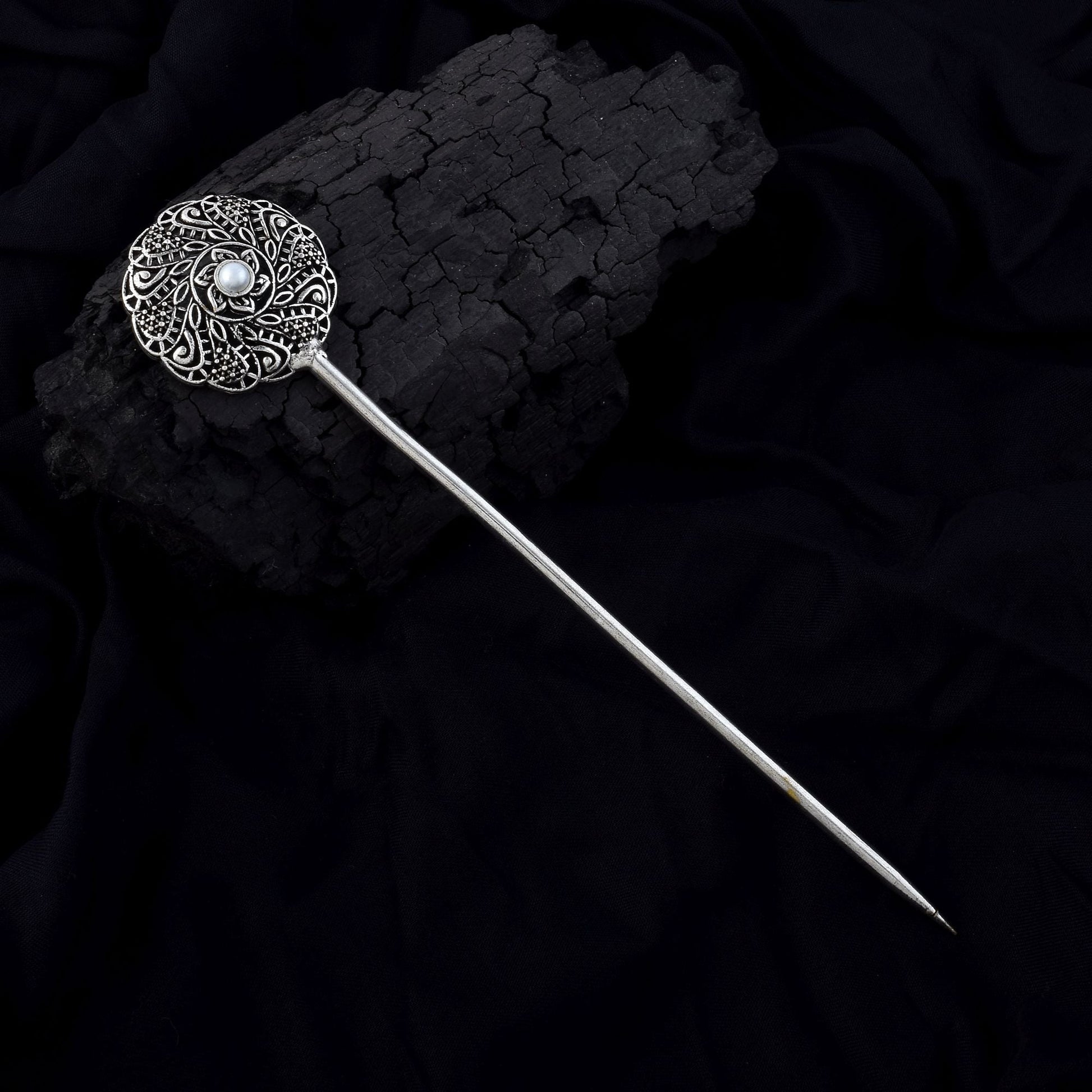 Stylish Silver Color Oxidised Hair Pin Perfect For Brides, Parties, And Cultural Fashion Jewelry