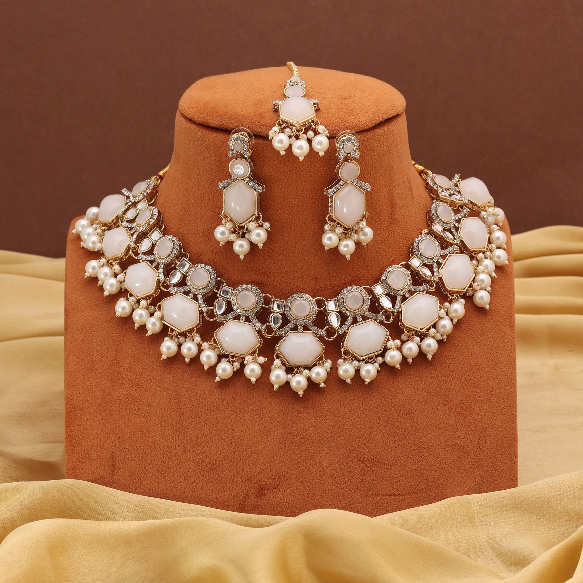 Elegant White Color Kundan Necklace Set For Wedding And Cultural Occasions