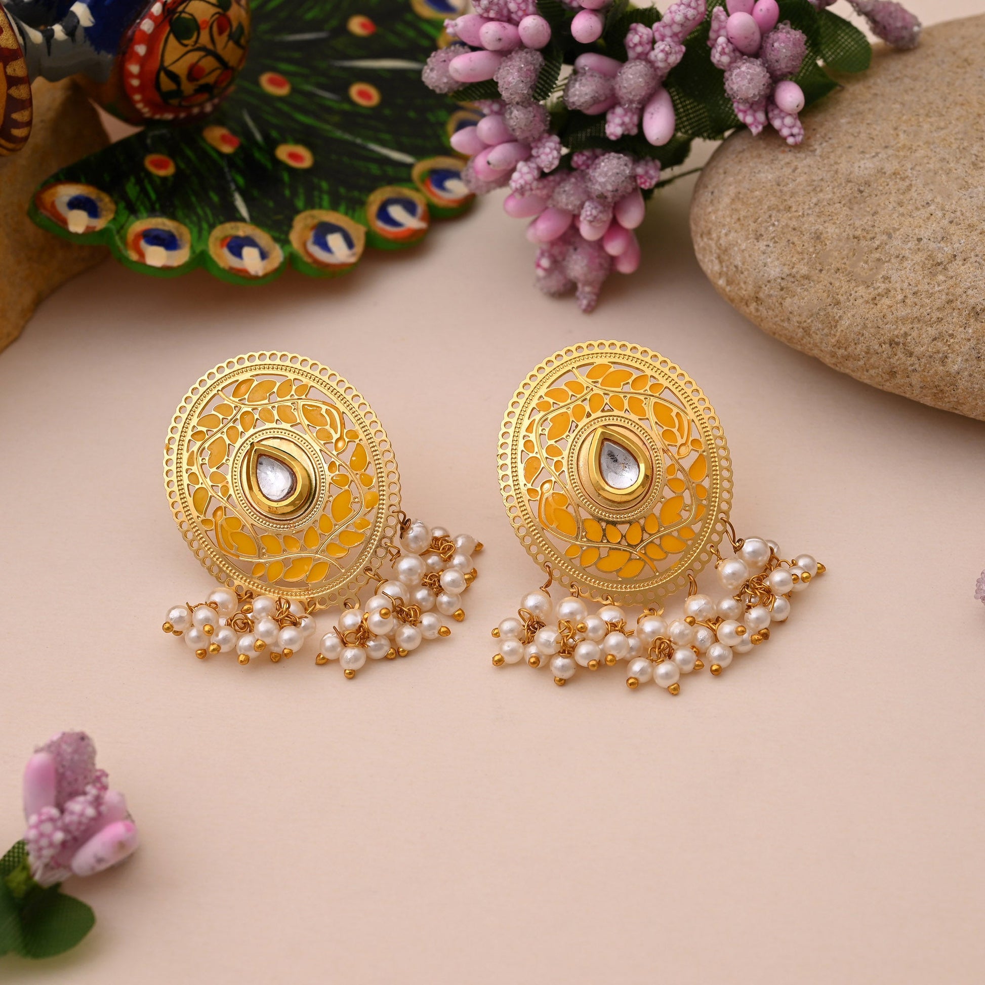 Royal Yellow Color Meenakari Earrings Crafted With Intricate Handmade Work For Festive Occasions